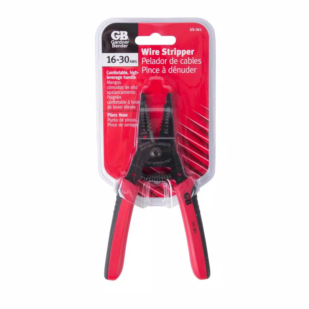 Hand tools are a part of every toolbox. With exclusive features for safety, durability, reliability and life strength, Gardner Bender hand tools offer superior performance on every job. The Gardner Bender GS-361 wire stripper/cutter will cut and strip stranded core wire from 30-16. This tool has precision ground cutting edges and a pliersβ nose for pulling and looping finished wire. The laser-etched markings ensure the markings will not rub off after continued use.
