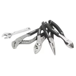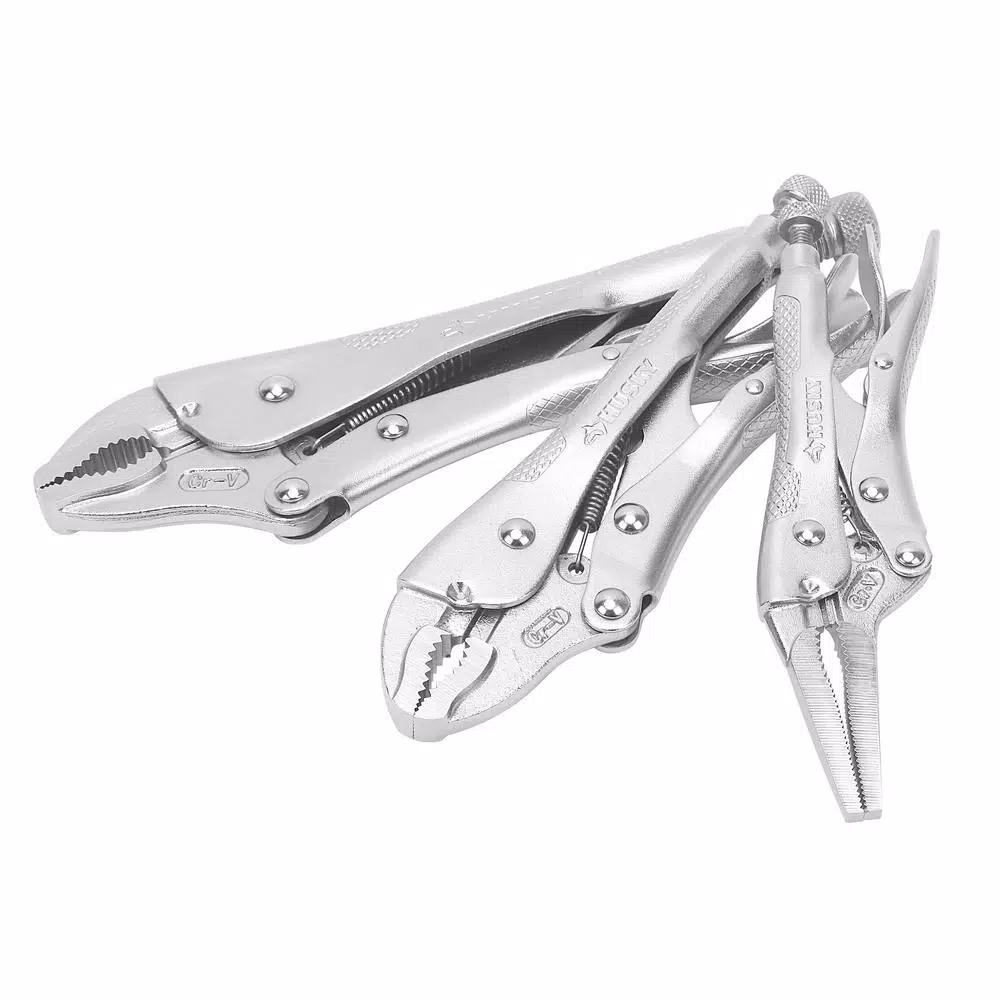The 3-Piece Locking Pliers Set includes one 6-1/2 in. Long Nose Locking Pliers, one 7 in. Locking Pliers and one 10 in. Locking Pliers. They provide a hands free operation. They are used as a clamp to hold 2-Piece of material together until they are permanently joined, to hold materials for welding, etc. The locking device also makes it easy to hold odd shaped objects. They are a must have for any professional or Do-It-Yourselfer.