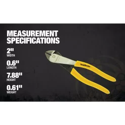 Made from drop forged steel, these 8 in. angled head diagonal cutting pliers come with plastic dipped handle. The high-leverage, hot-riveted pivot joint ensures smooth action and no handle wobble. The 14Β° angled head helps reach hard to reach and confined space areas.