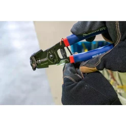 Southwireโs SNM1214HH-US ROMEX BOXJaw Wire Stripper, Dual Wire Cutter Strips both 12/2 and 14/2 Romex NMB JACKETS and 12 and 14 AWG Solid Wire. The wire stripper is proudly made and has a patent pending design. It strips both 12/2 and 14/2 Romex NMB jackets. This stripper features a large curved cutting blade as well as 12-14 SOL AWG single conductor stripping holes. The handles are double dipped and spring loaded for maximum comfort and torque.