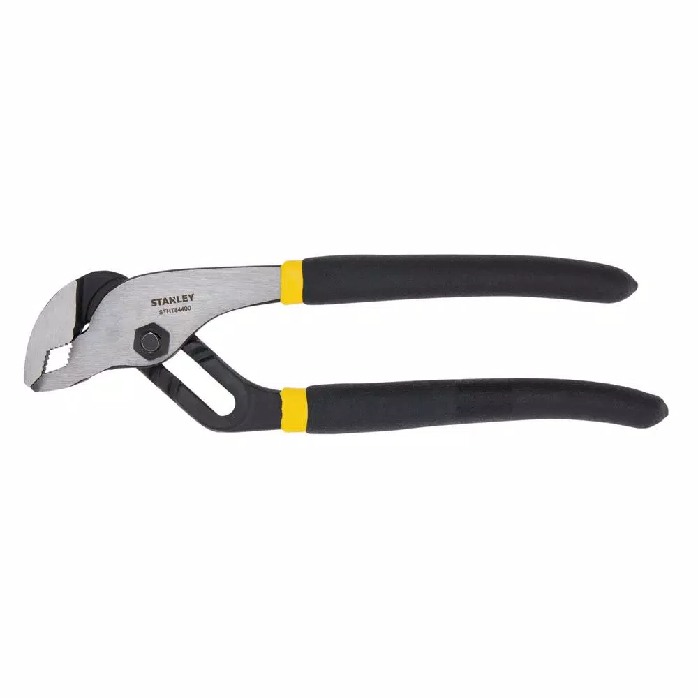 The Stanley 8 in. Groove Joint Pliers are versatile pliers designed to firmly hold objects of a wide range of sizes. Made from drop-forged steel, this durable tool features a low-profile design for easy access to small spaces. The double dipped grip provides a comfortable firm grip with powerful leverage.