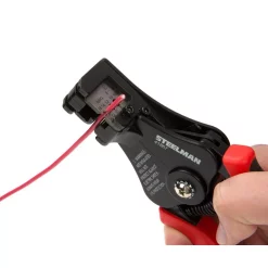 Quickly strip insulation from electrical wires with the Steelman 41867 Wire and Cable Stripper. Line up a wire with the precision machined stripping hole on the toolβs hardened steel jaws and with a single squeeze this 1-handed removes the insulation from wires and cables as small as 22 AWG to as large as 8 AWG without damaging the wire. The form-fit stripping holes allow easy removal of most types of single and multi-layer insulation including PVC, rubber, silicone and more. The ergonomic PP/TPR handle provides maximum comfort and the tool causes less strain on your hand thanks to the spring assisted reset. These compact sized strippers are ideal for anyone looking to do wiring work β from a journeyman linesman or professional electrician on the job to a DIYer or regular homeowner looking to do some minor home repairs.