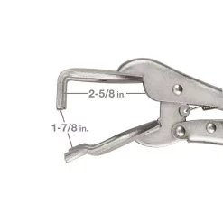 Prevent slipping or misalignment of parts while cutting, fastening, assembling, riveting, or welding with the TEKTON 9 in. Welding Clamp. Its specially-designed jaw holds angle and bar stock and other irregularly-shaped pieces. Set the jaw capacity and the one-handed grip and release action lets you quickly lock, unlock, re-position and lock again so it will not slow you down. It operates easily, even with gloves on. A chrome plated finish protects from rust and corrosion.